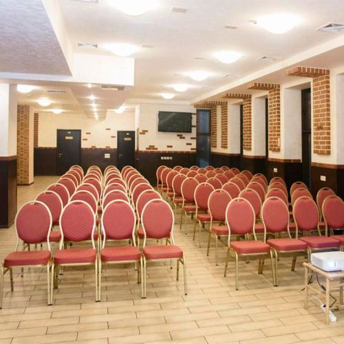 Большой зал торжеств идеально подходит для проведения выставок, концертов, конференций, бизнес-форумов и других масштабных мероприятий.