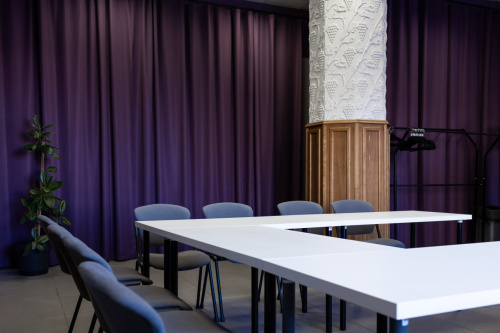 Зал находится на -1 этаже и располагает всем необходимым для комфортного проведения тренингов, стратегических сессий, творческих мастер-классов, лекций.