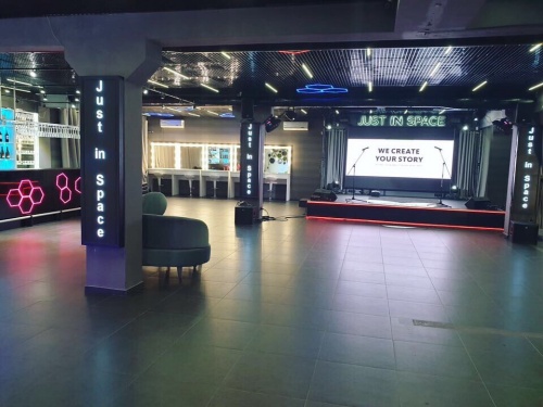 - LED-освещение (под потолком закреплено профессиональное звуковое и световое оборудование),